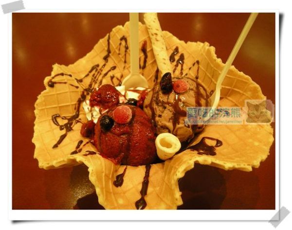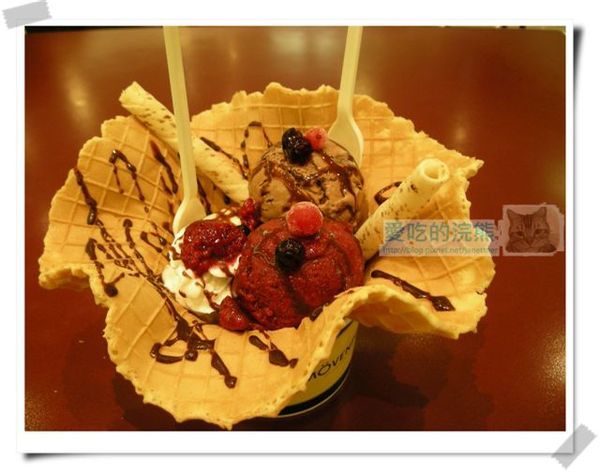 杯子是像捲桶的餅乾做成的,吃起來脆度很夠,而且吃到最後沾滿冰淇淋醬,