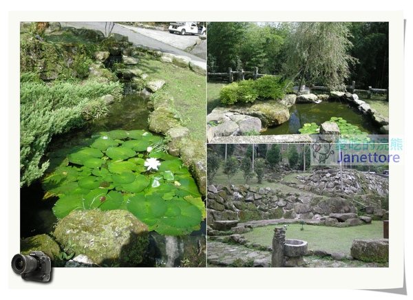 呈現三合院的格局,四周有許多的造景,
