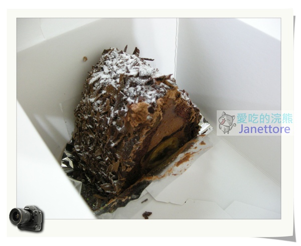 由巧克力蛋糕包覆著巧克力慕思,下層是香蕉
