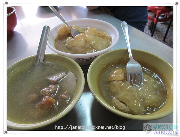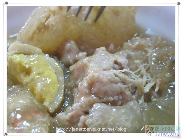 香菇肉圓是少了干貝及炸蛋,味道是傳統肉圓口味。