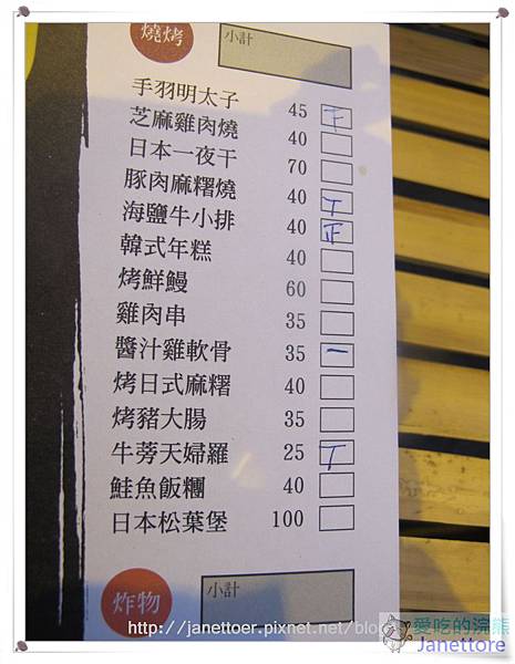 在位子上選串燒、炸物等菜色,畫一畫就可以等吃嚕