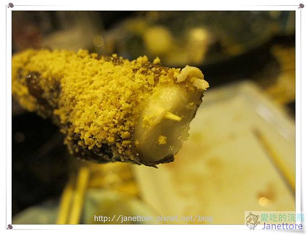 再撒上花生粉,請一定要趁熱吃,帶甜味的麻糬燒,豪豪食呀!!!