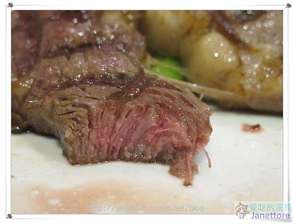 七分熟的肋眼牛排是主廚建議食用的熟度,肉質嫩,油脂分佈均勻,