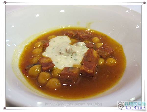 辣香腸是西班牙進口,鷹嘴豆在歐洲非常普遍,在台灣還蠻少見,口感吃起來脆中帶鬆。