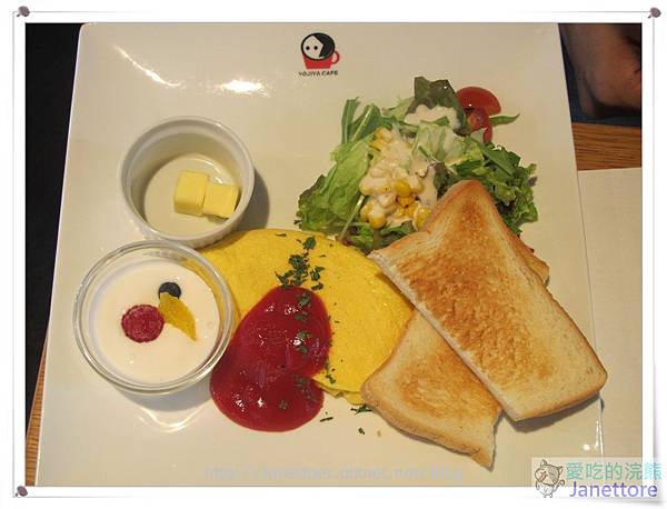 早餐set,沙拉、歐姆蛋,一片烤吐司、莓果優格