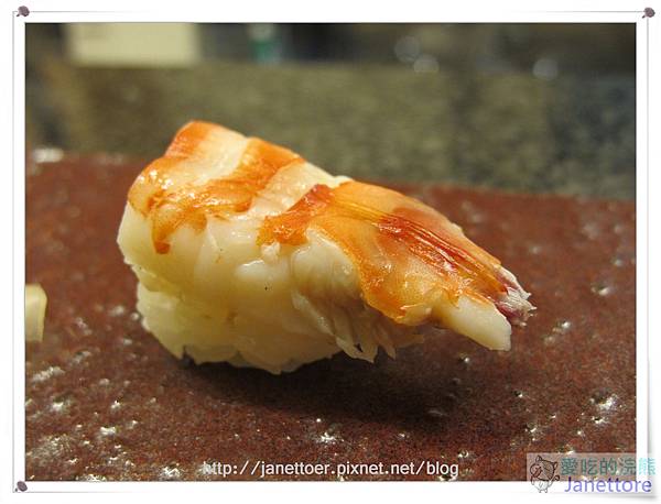 最後一個蝦壽司,老闆很NICE的幫我們切成2份
